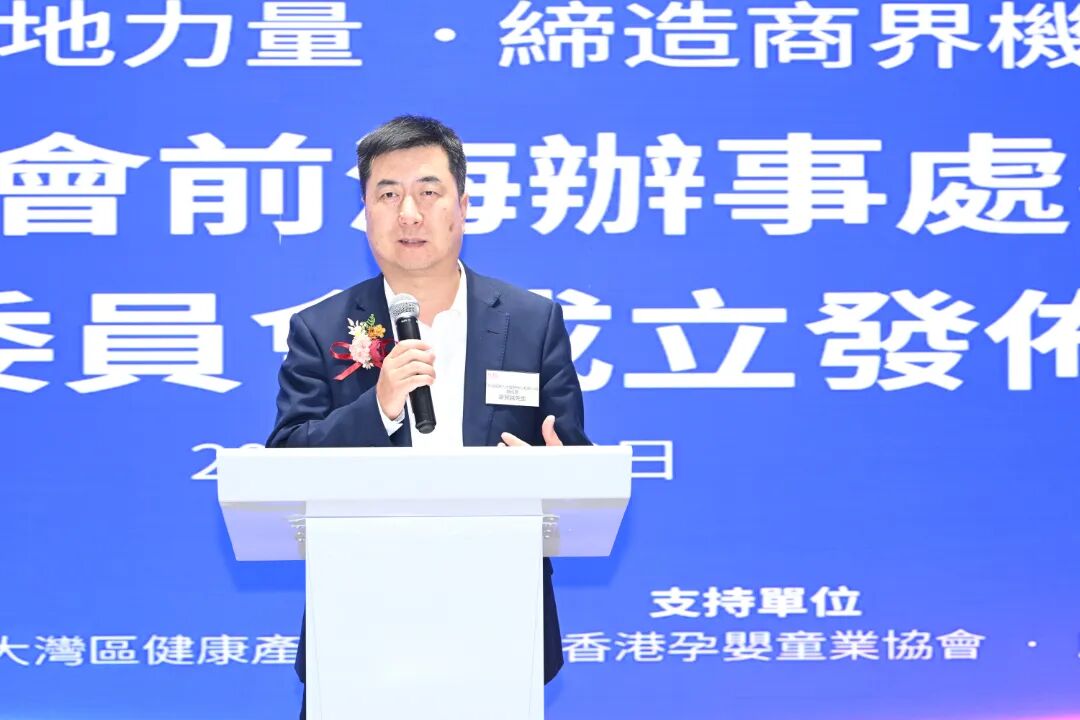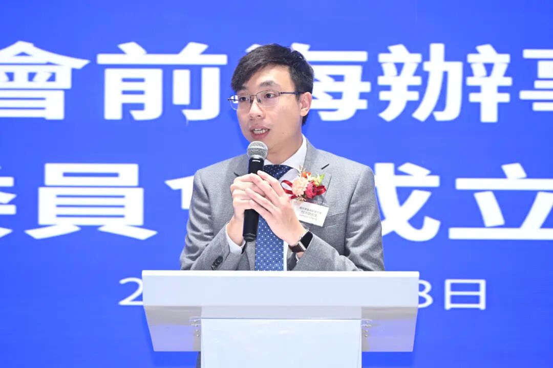 前海国际人才服务中心有限公司梁见越总经理致词祝贺香港品牌总商会青年委员会及前海办公室隆重成立,为融入大湾区发展大局作出贡献。他介绍了前海国际人才服务中心,并欢迎广大香港青年来交流合作,共同创业。