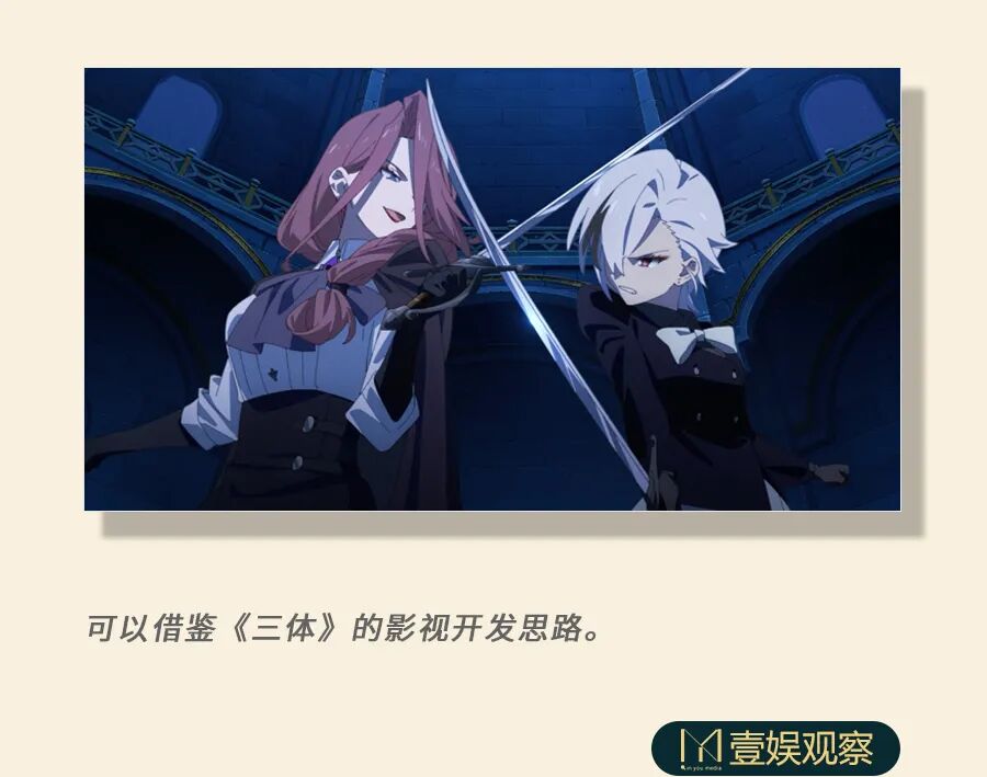 因此,《原神》的真人剧改编或许也可以借鉴《三体》剧集的模式,基于统一世界观下的不同开发切面去选择不同的国内外平台,从而在国际市场和国内市场都能获得应有的反响。并且,这种开发模式之下,平台本身基于竞争的压力也更有动力去进行高质量的改编。对于米哈游而言,《原神》的营收下滑已经肉眼可见,与其等到完全被遗忘才想起炒冷饭,不如趁热打铁将其尽快拓展为超出游戏本身的跨媒介IP, 说到底玩游戏还是有门槛的,但躺在沙发上畅快追剧依然还是全球观众最共通的娱乐方式。