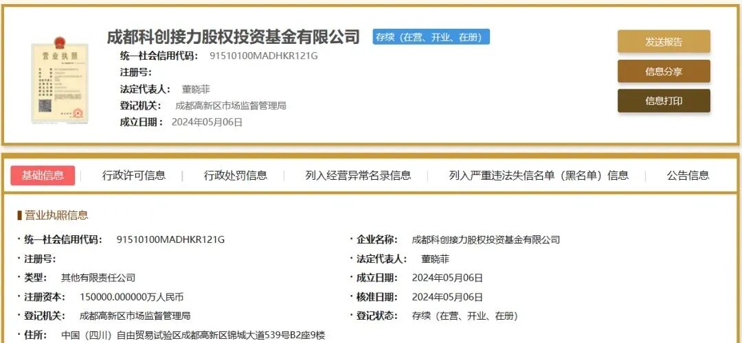 成都产业投资集团有限公司、成都科技创新投资集团有限公司、成都高新策源启航股权投资基金合伙企业(有限合伙)、成都交子金控股权投资(集团)有限公司、成都环投资本管理有限公司、成都交投资本管理有限责任公司等联合出资设立,成都产业集团旗下成都技转创业投资有限公司担任基金管理人。其中,成都高新策源启航股权投资基金合伙企业(有限合伙)以出资4.5亿元、持股30%为最大股东,基金管理人为策源资本下属机构新经济创投,为国有全资。而成都产业投资集团有限公司及其子公司成都科技创新投资集团有限公司则分别出资4亿元,各自持股26.67%。公告显示,投资方向上,该S基金将紧扣产业建圈强链的核心目标,重点关注电子信息、生物医药、新能源、人工智能等先进制造业领域的投资机会,通过“项目+子基金”的创新模式,进行二手份额投资,以“耐心资本”的方式全力支持成都本地科技企业的成长壮大。犹记得去年末,成都市《政府工作报告》主要目标任务实施情况中提到,2023年,成都市按照“前台分设、中后台统一”的思路,加快设立天使投资基金、S基金,并委托成都科创投集团集中管理。随后,成都科创投集团参与组建三个项目签约,投资总额逾50亿元,其中就包括成都科创投接力投资基金。官方表示,这标志着四川首支S基金成功设立,不仅将进一步完善成都私募股权投资基金的“募投管退”全链条综合服务体系,还将吸引更多资本参与服务科创企业,全周期支持科技创新和产业发展,推动“科技-产业-金融”的良性循环和国有资本的优化配置。