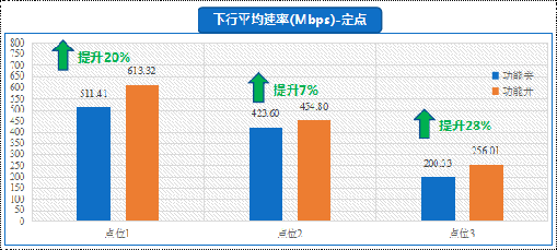 外场商用场景,选取好、中、差3个点位,验证CoMP 4个子功能单UE定点速率增益。