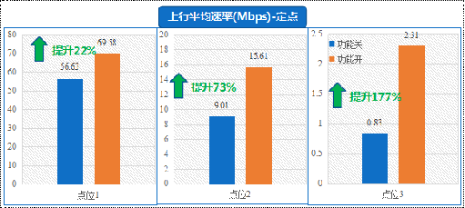 验证结果:打开上行CoMP功能后,单UE定点测试上行速率增益20%~150+%;打开下行CoMP功能后,单UE定点测试下行速率增益7%~30%。