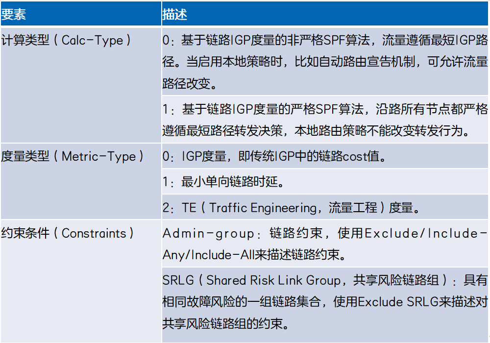 传统IGP(Interior Gateway Protocol,内部网关协议)基于链路的开销值来计算到达目的地的最优路径。在链路开销值不能作为路径优劣的唯一标准时,传统IGP的路由计算方法无法满足用户的不同需求,主要表现在如下两点:- 流媒体、视频会议等业务对网络时延要求高,需要IGP根据链路时延进行路径计算。
