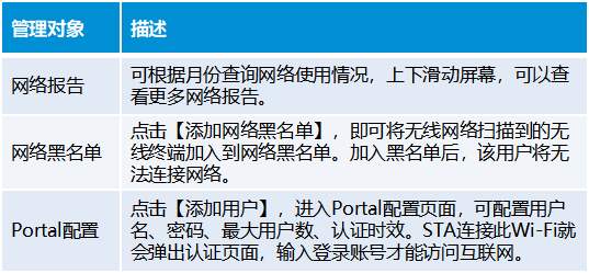 点击【更多功能】,支持网络报告、网络黑名单、portal配置3种功能。
