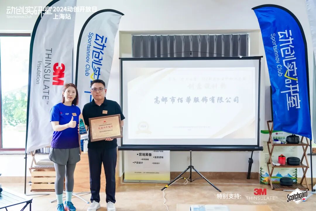 活动现场,3M消费品事业部服饰及纺织材料部亚太区业务总经理 刘丽娜女士在“动创大家说”环节为获奖企业颁发3M™新雪丽™加工资质证书。