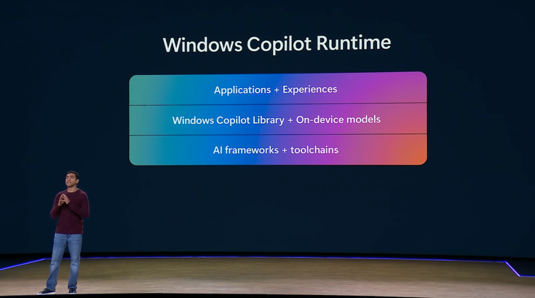 首先,现在可能是打造产品或创业最激动人心的时刻,我敢说自互联网时代以来,还没有见过如此令人兴奋的时刻。我们有很大的机会和能力去构建一些新的东西。构建新事物并真正改变格局的能力,都是在平台变革的时代到来的。我们已经有一段时间没有经历过平台变革了,现在看起来我们正在经历这样的时期。所以,我最大的建议是,这是一段特别的时期,要好好利用它。现在不是推迟计划或等待下一个机会的时候,这是一个特殊的时刻,在未来几年里,会有很多事情发生,许多伟大的新事物会开始涌现。关于平台变革的第二点是,当手机革命开始或在 2008、2009 年真正兴起时,你会看到人们说:「我们是一家移动公司(mobile compan),我们有移动应用。」但仅仅几年后,没有人再说他们是一家移动公司,因为这已经成为基础标准。(AIGC) 是一项了不起的新技术。但它并不能让你摆脱构建伟大产品、伟大公司或伟大服务所需要的艰苦工作,你必须付出这样的努力。AI 本身是一种新的推动力,但它不会自动打破商业规则。所以,你可以把它当作一个新工具来使用,但你需要开始思考如何在你所做的事情中构建持久的价值,很容易在淘金热的兴奋中忽视这一点。从 2023 年到 2024 年,无论你是否身处科技行业,或许都会感受到这一趋势:人工智能正在重塑我们的生活。而每一次技术的突破,总是会带来生产力变革。PC 作为重要生产力工具,也在这一轮浪潮中也在面临巨大的改变,甚至是重新定义的可能——这就是如今不断被提及的 AI PC。与普通 PC 不同的是,AI PC 往往需要三个方面的条件:去年 9 月,英特尔酷睿 Ultra 处理器,构建出了 CPU+GPU+NPU 协同计算的异构加速体系,为我们展示出下一代 AI PC 的底层逻辑。其次是本地 AI 大模型,有了强大性能的 PC 才能支撑起本地大模型的流畅运行,从而为用户提供各种 AI 服务。最后是个人知识库,这不仅能有效保护数据与个人隐私,也为用户建立专属自己的个性化 AI 助手提供了支持,是让 AI PC 真正走向生产力的必要条件。但对于 AI PC 的定义,微软早前就给出了它的三个条件:三个条件中有两个围绕 Copilot 展开,而此次 Build 2024 中,微软更是有很大篇幅用在 Copilot 上,还推出了 Copilot+PC 的概念,足以见得微软对其重视。这主要是因为微软对 Copilot 的定位并非简单的助手,而是「一种使用自然语言处理技术或大语言模型,帮助人们完成复杂或认知任务的应用程序或组件。」这也体现出微软的更多野心——打造一种新的交互逻辑,甚至是新的 AI PC 形态。早在去年这个时候,Copilot 就已经出现在了微软几乎所有重要产品中,让 Bing、Office、Edge 等焕发出新的活力,并通过丰富的插件集使其成为一个综合了多种辅助功能的「接口」。「无论是想要打开喜爱的音乐,还是预定机票、解答难题,都可以通过自然语言在 Copilot 实现」,再加上 Copilot 物理按键,以及 AI 加持下对自然语言的理解能力,使 PC 正在转变为一个真正的 AI 硬件。正如它的名字一样,Copilot 正在越来越接近它目标中「副驾驶」的角色。此次大会上,微软则进一步为开发者提供了更好的开发环境,支持其构建属于自己的定制 GPT,带来了更大的灵活度和未来的可能性。正如浏览器可以看做互联网与人连接的「接口」,Copilot 也在成为 AI 与人连接的「接口」。这一手棋,可谓是下在了重新定位 AI PC、掌握 AI 时代话语权的关键点上。还记得多年前,苹果曾通过一系列广告塑造了一组关于「Win boy」与「Mac boy」的形象。Mac 这边穿着舒适面料的 T 恤,而 PC 这边则只是随便找件便宜西装了事,通过形象的直观对比,衬托出微软大公司作风、陈腐过时的印象,两者形成了鲜明的对比。而当时的微软也确实以实际产品为苹果提供了不少素材,面对苹果的攻势尽显疲态,不过如今这一情况似乎正在悄然发生着变化。微软已经不再是那个穿着西装的「商务人士」,反而更像是一名「战士」,带领众厂商一同,以 AI PC 之名,吹响了与 Mac 的正面交锋的号角,正如周一 Nadella 在接受采访时表示的那样:苹果在多个方面都表现得极为出色,我们现在正期待 Windows 与 Mac 能够重新展开真正意义上的对决。