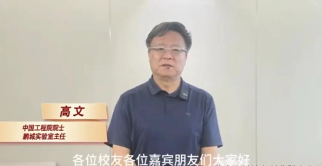 中国工程院院士、鹏城实验室主任高文通过视频致辞。高文院士对北京大学在人工智能领域取得的瞩目成果表示肯定,并期待北大校友创业联合会助力校友们在产业界、学术界创造出非凡成绩。