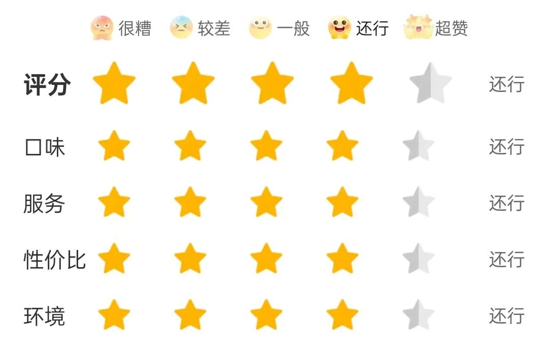 对于凭感受打出4星的顾客来说,此刻无疑是一脸懵逼:what??我觉得“还不错”,但又没到惊喜或极致,这难道不应该是四星吗?