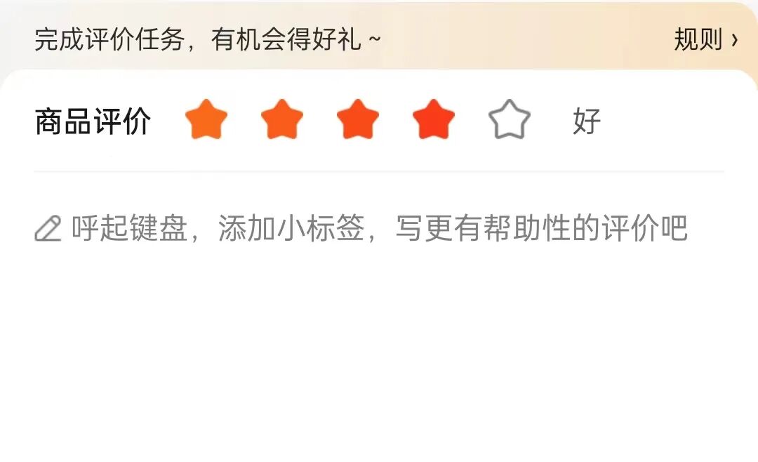 我的一位邻居,年近八旬,独自居住,在子女的帮助下学会点外卖,解决了个人的部分餐饮问题。若她在平台奖励积分的鼓励下,点开评价页面,又凭借真实想法写下4星评价,又是否会给她带来什么麻烦?