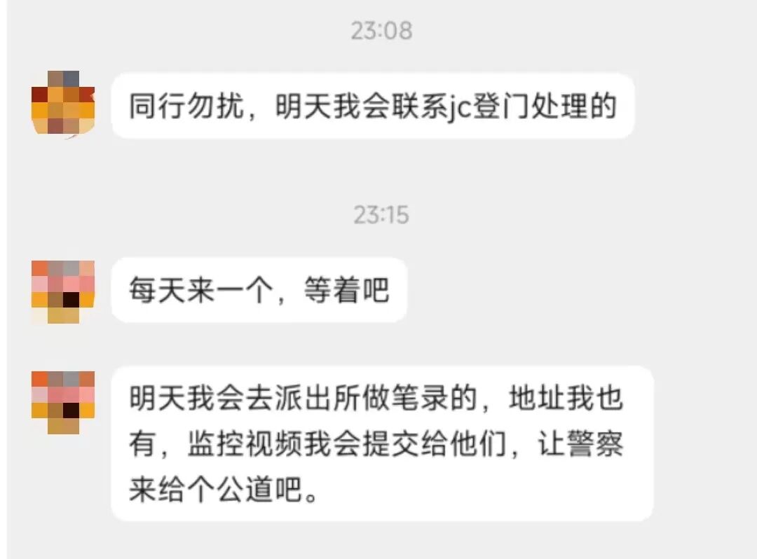 这一套因果自洽的说法,被商家行云流水的甩出之后,还会用“JC上门”之类的方式,警告甚至是威胁。