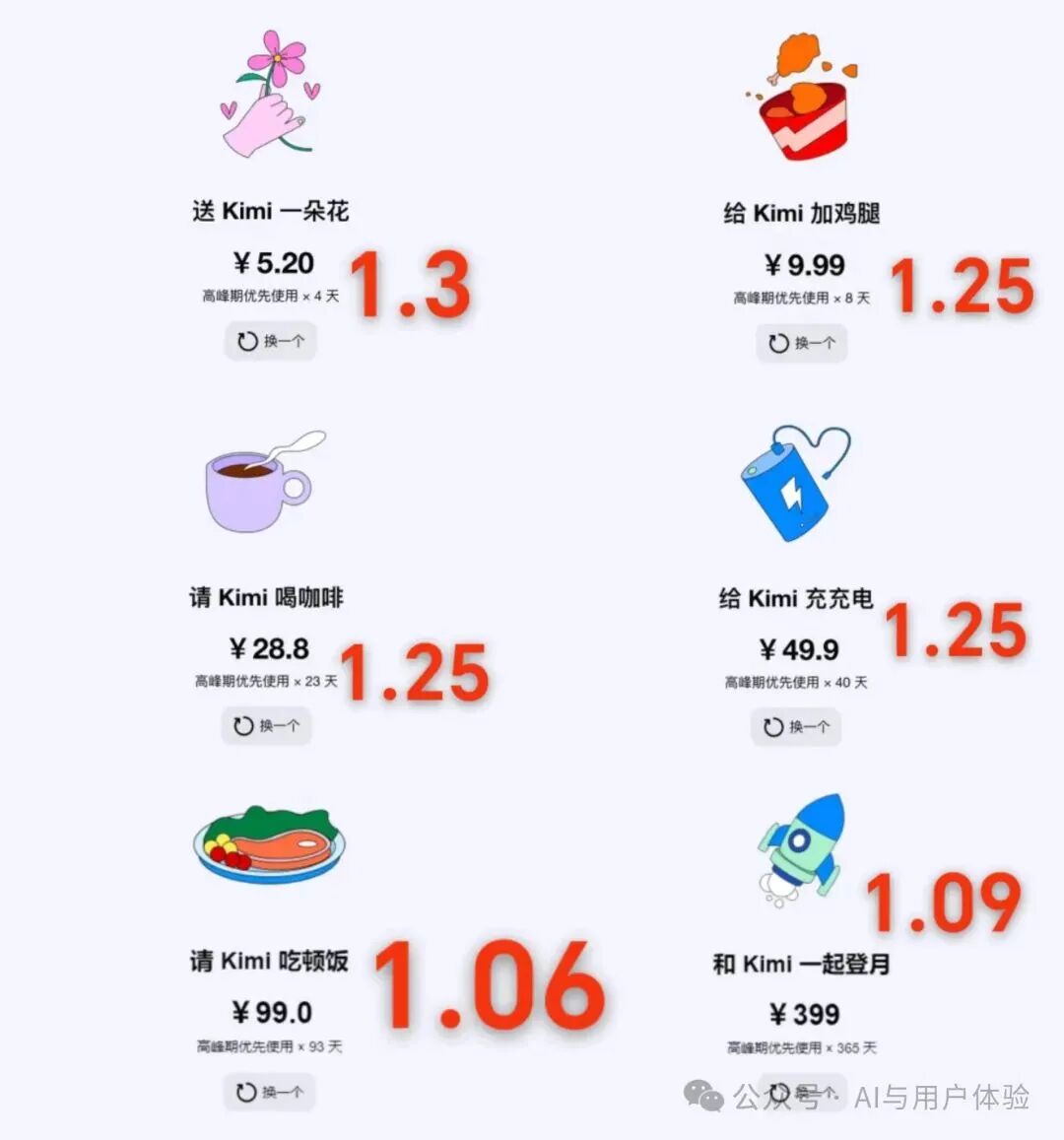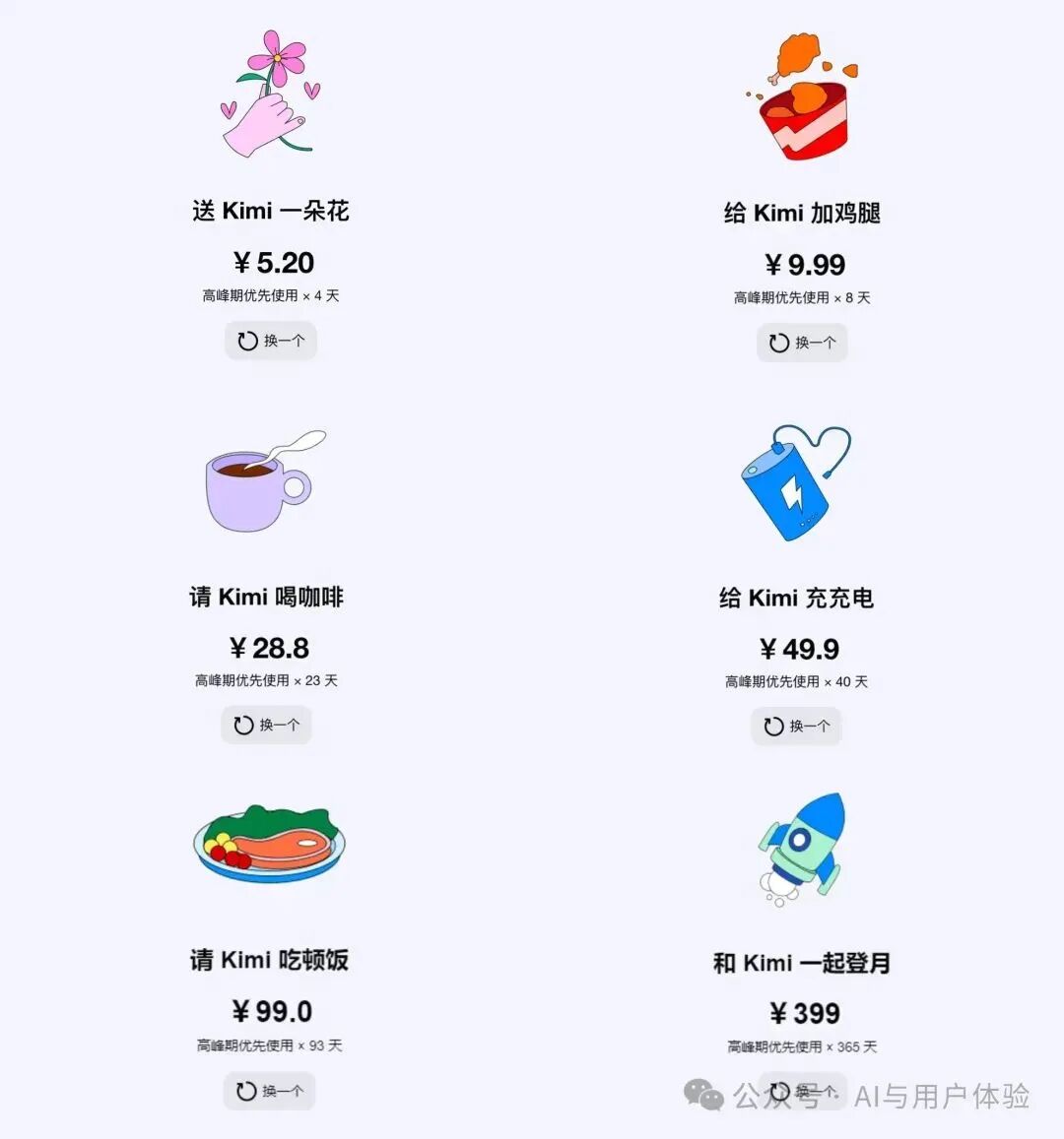 除此之外,KimiChat张设计打赏的不同价位时也有很亮眼的设计。