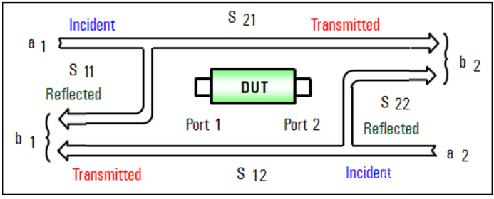 Sij 表示网络散射参数的各个分量,其中 Sii 表示当所有其它端口接匹配负载时端口 i 的反射系数, Sij 表示当所有其它端口接匹配负载时从端口 j 到端口 i 的传输系数。