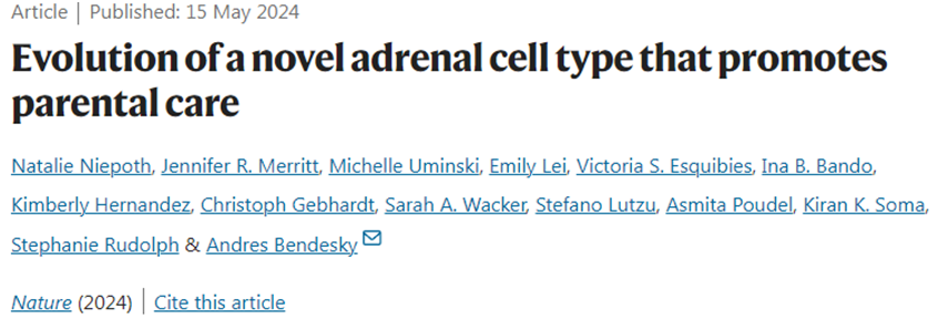 Natalie Niepoth et al. Evolution of a novel adrenal cell type that promotes parental care. Nature, 2024, doi:10.1038/s41586-024-07423-y.