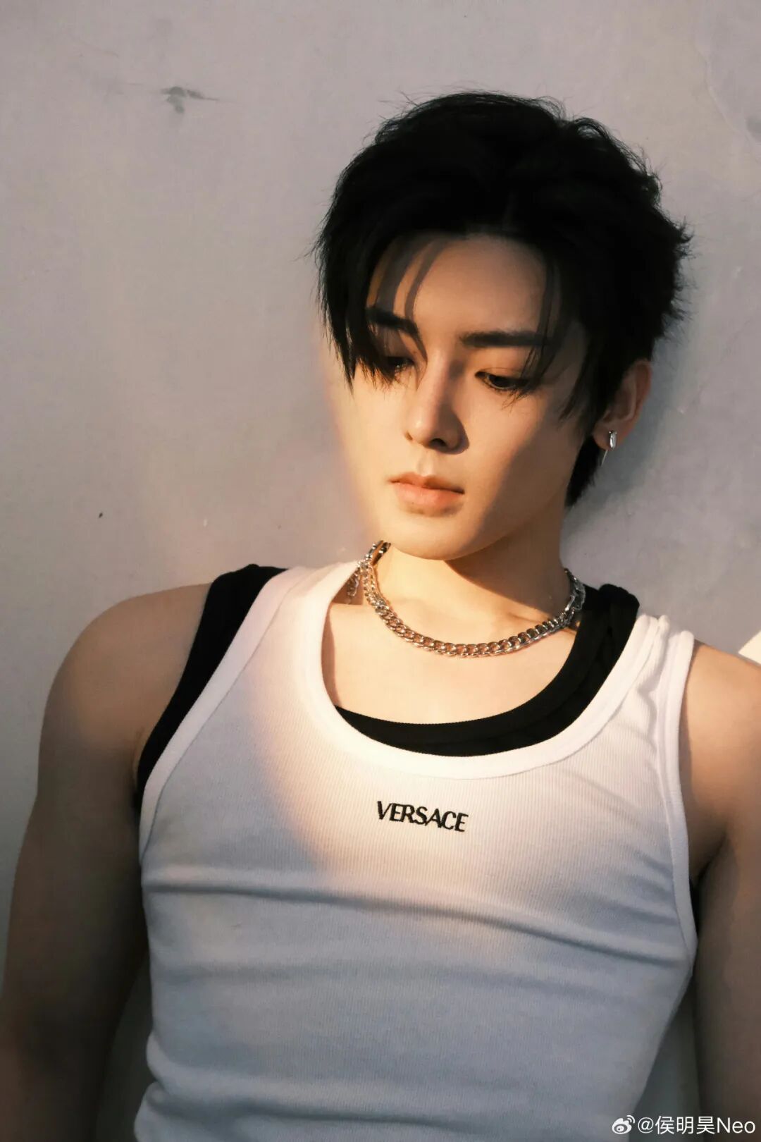 背心的错位叠穿,也是技巧之一。此类搭配会将人的视觉重心放在衣服上,在搭配酷感项链,营造满满荷尔蒙。