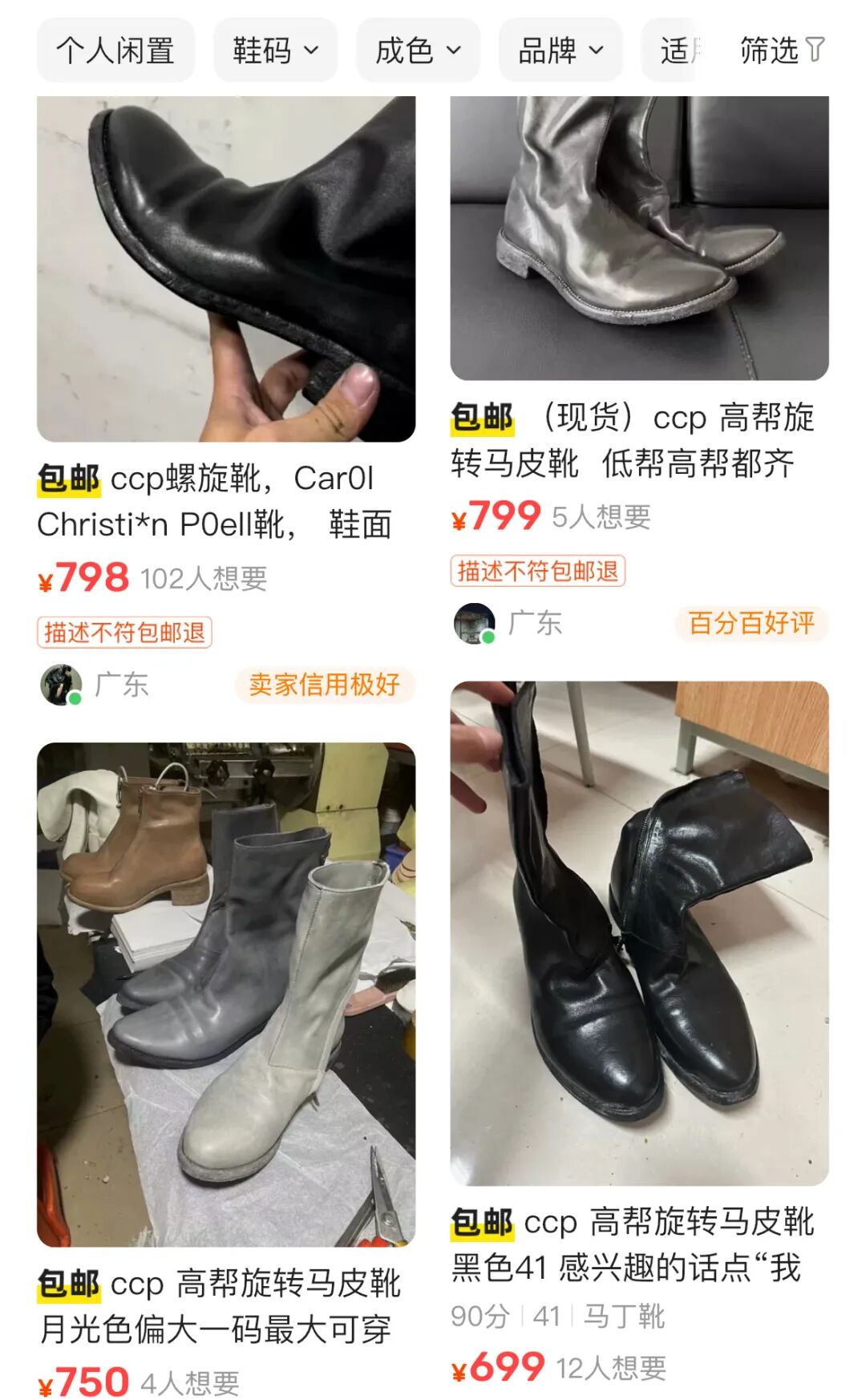 CCP 之于国内时尚环境,有着一批非常死忠的先锋消费者,可碍于 CCP 价格的天然壁垒和入手难度,CCP 的真正普及度恐怕也并不大,但在最近一两年内,CCP 售价高达万元的鞋靴开始高频出现在时尚博主脚下。