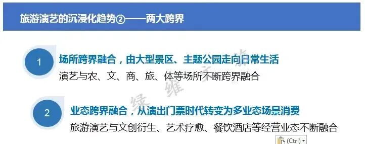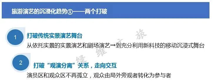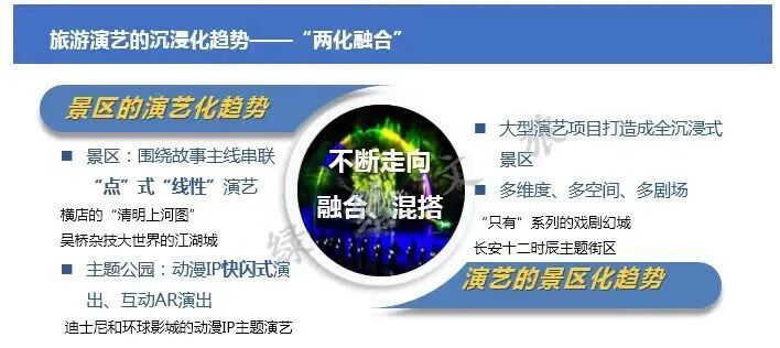 旅游无处不演艺,自然景观、文物、民俗文化,都要用表演去体现 、用表演去激活,泛演艺化的理念+ 泛演艺化的手法+泛剧场化的手段,成为打开城市休闲新场景、旅游消费结构最重要的要素。