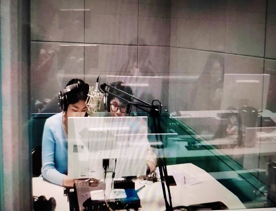 英音组张皓天和陈亦然在紧张备稿
