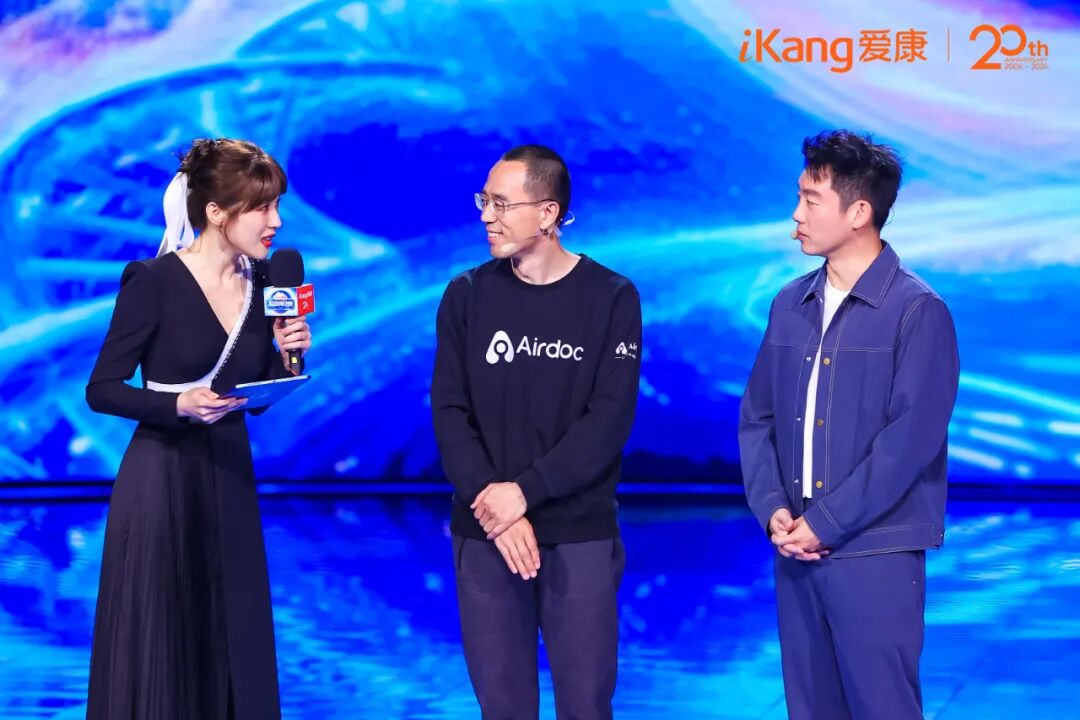 两人一来一往间诙谐风趣地讲解了爱康AI体检的多种应用与健康管理解决方案,也为此次《爱康AI智爱之夜》定下基调。晚会以“ZHI”字贯通,围绕“智能、智慧、智享、致敬、挚爱”五大关键词,爱康旨在通过一场轻松的晚会,向观众传递定期体检的重要性,并沉浸式呈现被AI赋能后的体检与数智化的一站式健康管理,以健康为名,向生命致敬。