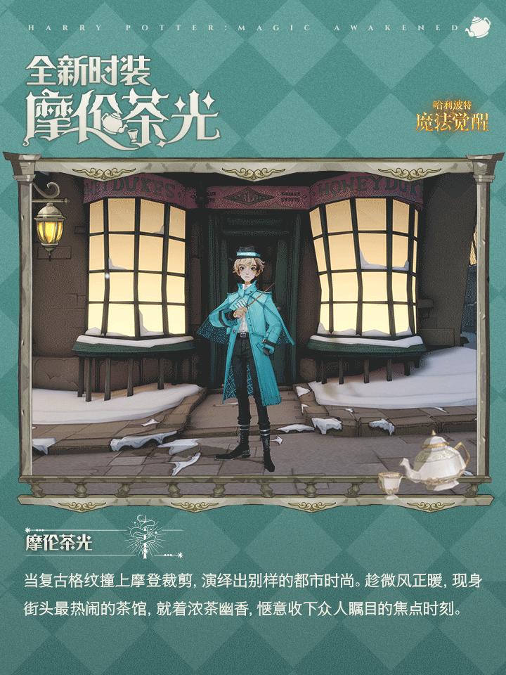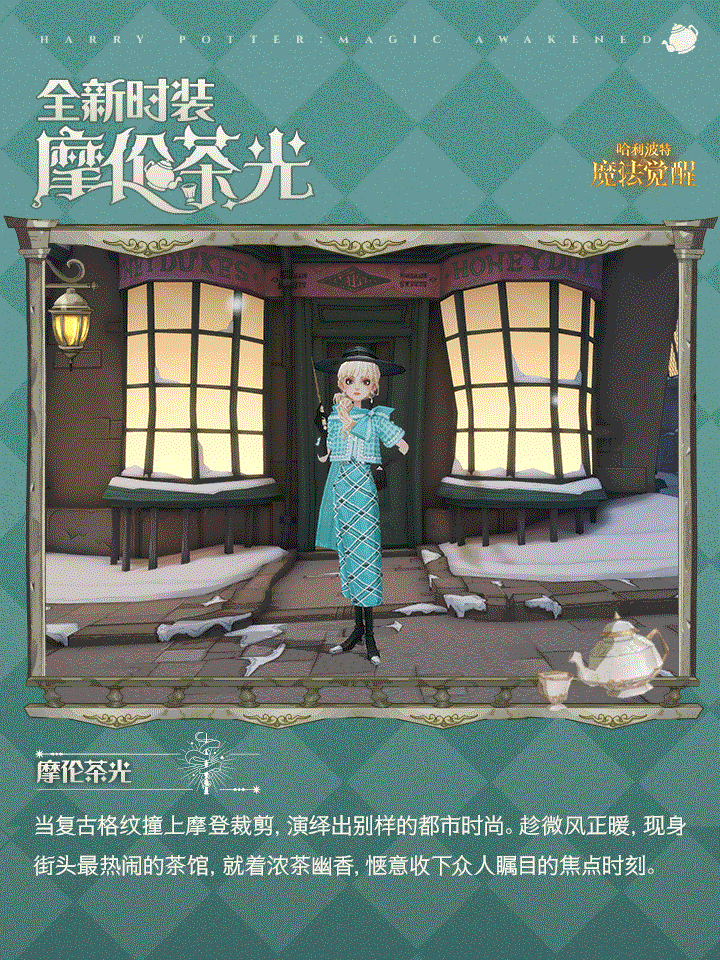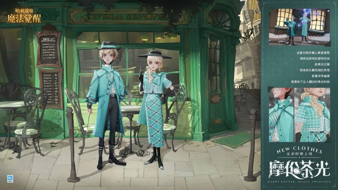 注:当巫师们在「幸运轮盘」抽取到本期时装,将会同时获得帽子:「午后闲茶礼帽」/「时青礼帽」、发型及表情包!
