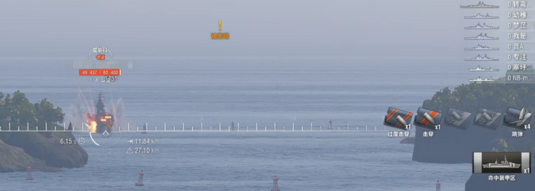 另外,虽然威斯康星的弹道被优化的更加平直,但是依然保持了一定的曲线,面对中距离的D战依然可以吊甲板出核心,输出能力和目标选择属于是既保留了传统M战的特色,又强化了极端环境的输出能力。
