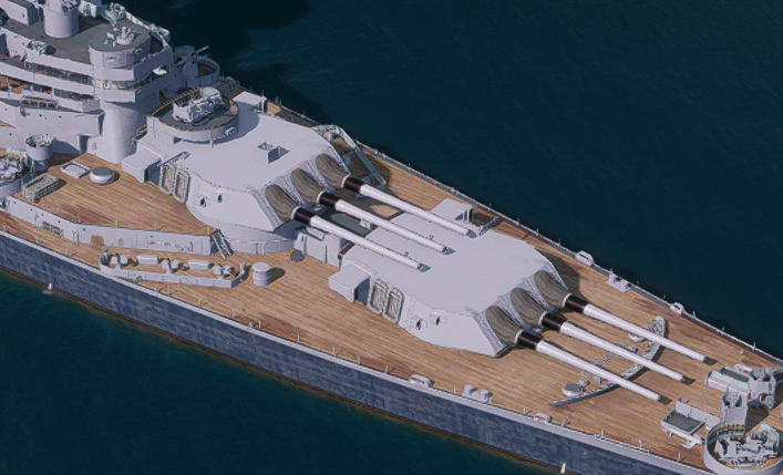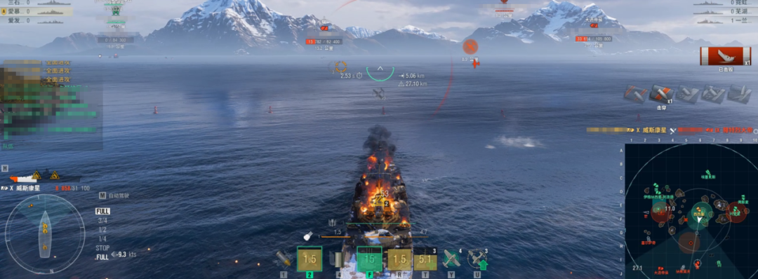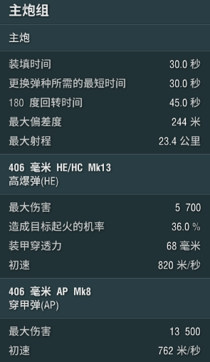 威斯康星的基础航速为32.5节,使用航速旗可以增加到34.1节,在Ⅹ级战列舰中属于第一梯队,虽然17.3秒的舵效不算顶级,但是在920米转向半径和3.57推重比的加持下,整体的操作手感依然非常舒适。