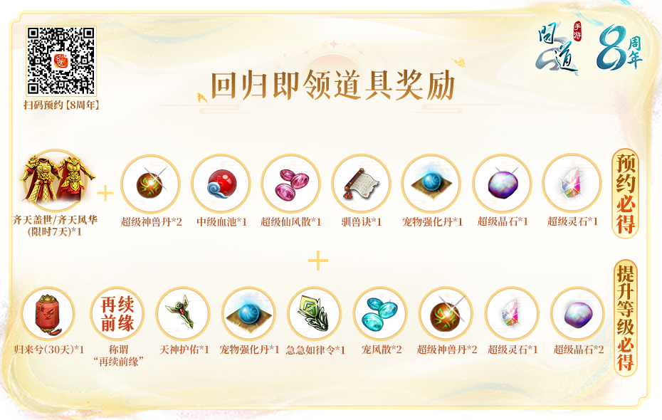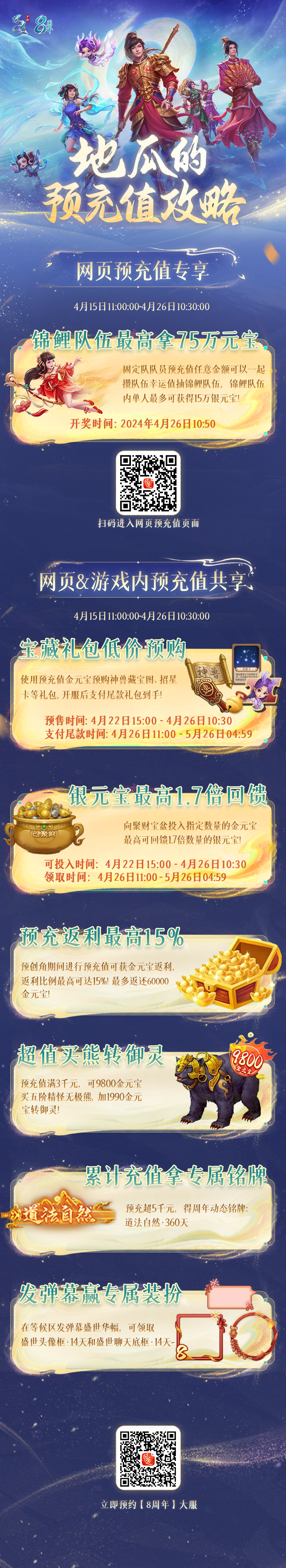 8年再战,福利加码献道友!120万兑换币、最高21万元宝返利、抽神兽周年宠!