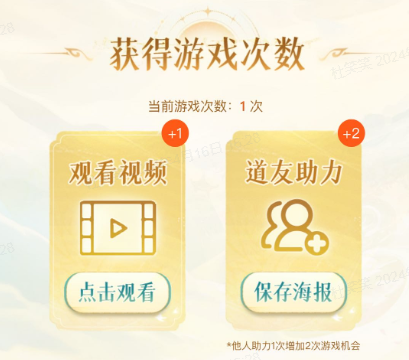 ◆首次接受邀请助力其他道友,可获得1次游戏机会。