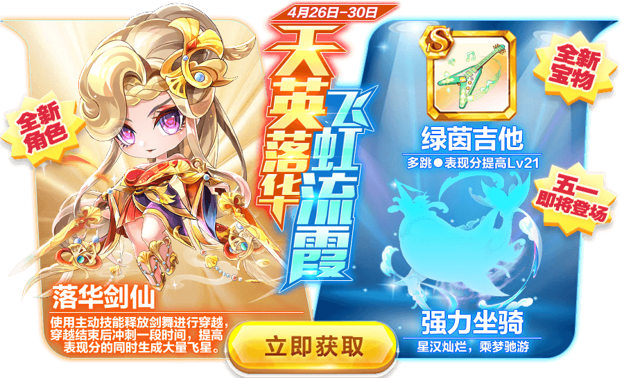 活动期间,4月30日以及5月2日活动当天登陆酷跑国,可分别领取七彩石*5。