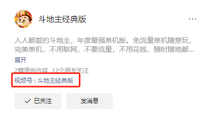 1.关注斗地主经典版,前往主页,点击视频号进行观看。