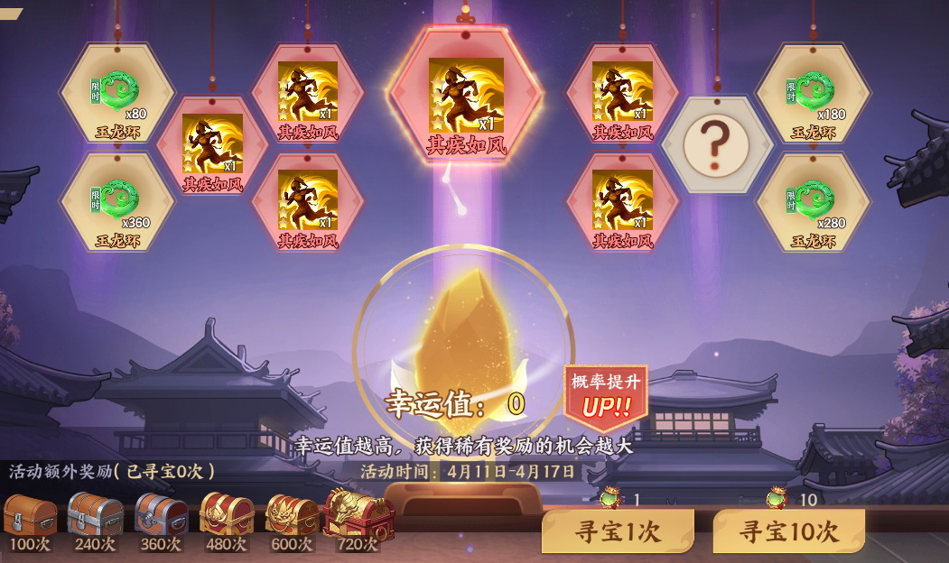 消费满24000元宝,即可获得史诗宝珠*80,3星青龙扇*1