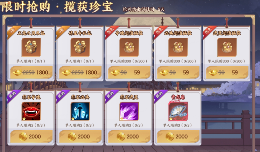 1800元宝购买将星令礼包(将星令50个)(限购1次)