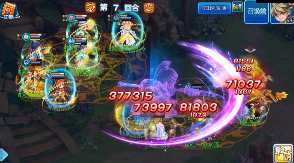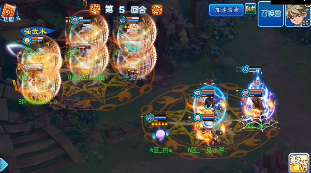 第7回合,【梦之队】刀客宠物同调自己,然后凭借先手优势刀客和时客出手成功在对方刀客和时客出手前将其打倒;