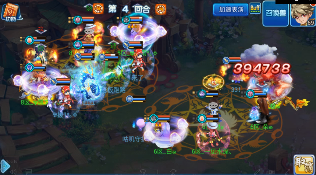 第5回合,【梦之队】双输出群攻一起触发星灵,打出非常强的效果,使用打出道士和飨灵复活,并且将时客和刀客打倒;
