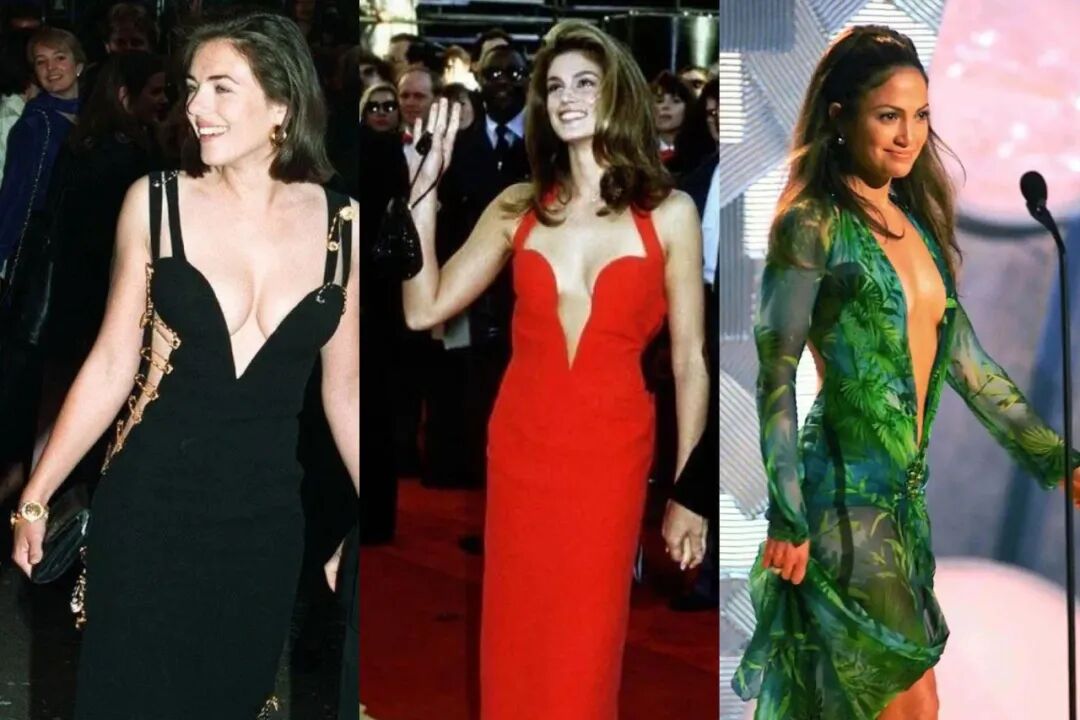 从目前的数据来看,Versace赌对了,蔡徐坤的商业价值再次得到印证。据微信公众号LADYMAX监测,Versace天猫旗舰店已对27款商品中标注为“蔡徐坤”同款,其昨日的搜索数和访客数较此前一天翻了一番,Versace Jeans的手袋成交量较上周激增逾1500%,包括皮夹克、卫衣、衬衫、T恤、牛仔裤以及墨镜等多个蔡徐坤同款商品的热门尺码目前均已售罄,其中同款皮夹克的售价高达34900元。 同样的盛况早在2019年就已上演。当时,一向因与偶像文化保持距离而被称为“行业异类”的Prada,出人意料地任命刚刚出道一年的蔡徐坤为品牌代言人,相关话题的曝光量也在短短一天之内超过7亿。 尽管相较于其他奢侈品牌,Prada与蔡徐坤的首次合作在艺术家曹斐的指导下,以广告片《人类几乎》打破了市场的思维定势,为奢侈品牌与偶像文化之间的关系提供了一个新颖的诠释角度,在拥抱流量的同时坚持了自身的知识分子文化形象。 然而不可否认的是,Prada此后也的确与奢侈品行业中的大多数一样,从蔡徐坤所带来的流量中获利,在争议中赢得了更广阔的市场。蔡徐坤的粉丝涌向Prada店铺,贡献了可观的销售业绩,也带火多个明星单品。Prada集团创意总监Miuccia Prada甚至曾公开表示,粉丝并不是通过他们认识Prada,而是通过蔡徐坤才认识Prada。 即使在2023年也就是蔡徐坤担任代言人的近四年后,Prada仍受益于他的庞大影响力。去年3月的米兰时装周中,蔡徐坤受邀出席时装秀带动Prada曝光,相关词条的一日微博阅读量达到4.97亿。 不过,这是蔡徐坤最后一次为Prada带来流量。在去年6月蔡徐坤被传出负面消息后,Prada虽未正面发布解约声明,但双方的合作被普遍认为不可能持续。Prada官方微博则在去年5月后,就再未发布有关蔡徐坤的任何内容。 至此Prada在任命代言人方面,似乎又重新回到形象逻辑而非营销逻辑。去年7月,在经历多次代言人风波后的Prada宣布成为中国国家女子足球队官方合作伙伴,将为后者提供正装支持,被视为品牌转变代言人策略的信号。某种角度上来说,蔡徐坤是Prada撬动中国市场的支点,但作为最擅长诠释当代的品牌,Prada将偶像文化视作时代的阶段性产物加以利用,并服务于品牌连贯的创意输出、独特的文化营销以及扎实的商品运营,最终完成市场规模的跃升。不同于Prada,Versace却是从一开始就与偶像文化有着深度绑定,它制造偶像并与流行文化同行。 Versace由Gianni Versace创立于1978年,后者不仅发掘了Naomi Campbell、Kate Moss、Cindy Crawford、Helena Christensen等名模,一手缔造了超模时代,更是首个拥抱流行文化和名人效应的设计师。 邀请明星坐在前排看秀这一如今奢侈品牌的常规操作,在时尚行业仍局限于社交名流的上世纪80年代却极为罕见,而当时Gianni Versace邀请麦当娜出席时装秀的举动,则开创性地将流行文化融入时尚行业语境之中。在随后的几十年间,由众多女星在红毯上穿着的Versace礼服裙,几乎构成了该品牌所有的重要瞬间。 不论是演员Elizabeth Hurley出席《四个婚礼和一个葬礼》首映礼时的黑色别针长裙,还是名模Cindy Crawford在1991年奥斯卡颁奖典礼上的低胸露背正红色长裙,以及歌手Jennifer Lopez出席第42届格莱美颁奖典礼时启发了Google图片搜索功能的绿色印花长裙,都是Versace与明星相互成就的经典案例。 图为Elizabeth Hurley、Cindy Crawford以及Jennifer Lopez穿着Versace礼服