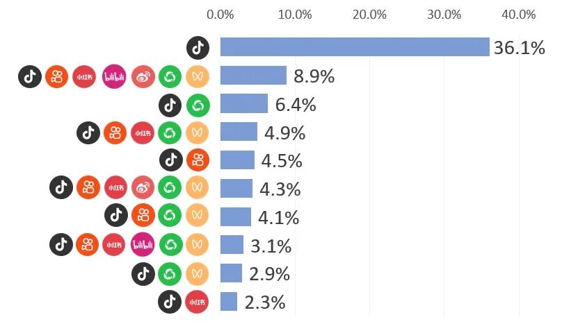 ■从平台组合来看,抖音已经成为各大车企的“必争之地”,top10常见组合皆包含抖音,占比高达77.5%;