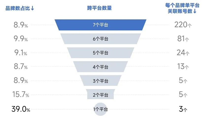 ●成熟型品牌虽仅占4.3%,但实力稳健,平均每品牌关联78个账号;