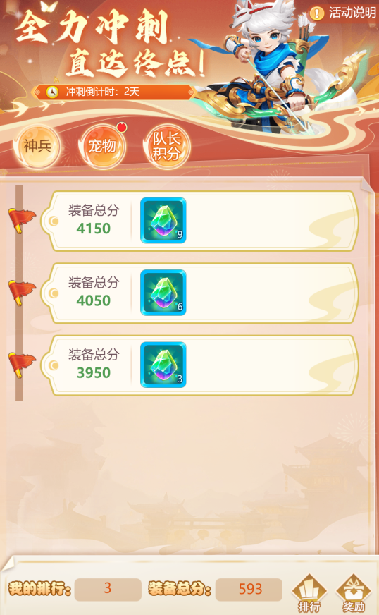 第1名:限定坐骑+神兽之魂*5+金币袋*5+高级兽诀*3;