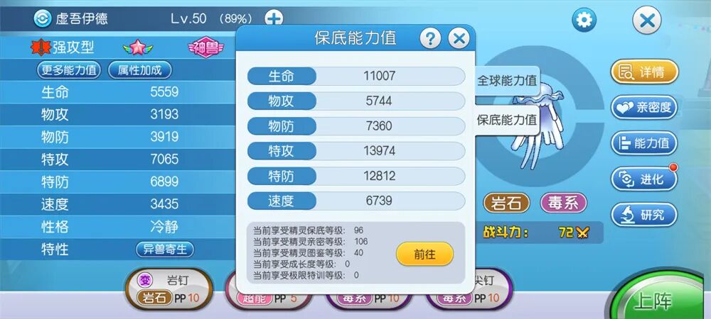 在这关中,主要还是纸剑强化杀后三只,前面三只利用水母等精灵耗死,这里水母培养要高一点,不然扛不住耿鬼的伤害,与此同时咸鱼的作用除了免疫公主的地面系技能外,还可以利用威吓特性减少公主的攻击等级,来保证水母的存活。最后是四只满血,月影和水母半血。