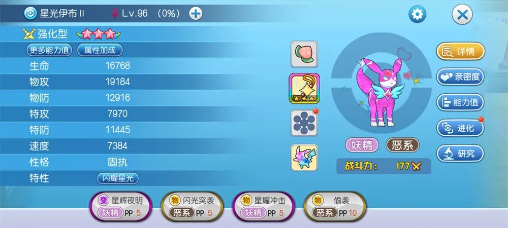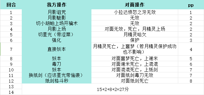 在这一关我的星光是没有带偷袭的,不然应该可以杀最后一只纸剑,但是对于得分也没有影响。星光带涩栗的原因是免疫一次睡眠,对面的月精灵会一直变化送强化给星光的。开骗术的原因是我的星光速度没有对面快,有了骗术可以先手秒对面。这一关主要第一只小拉达会愤怒之牙且有红牌,所以利用月影和小胡帕来免疫并耗掉红牌。
