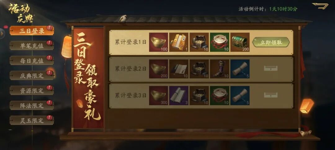 活动一:三日登录送好礼