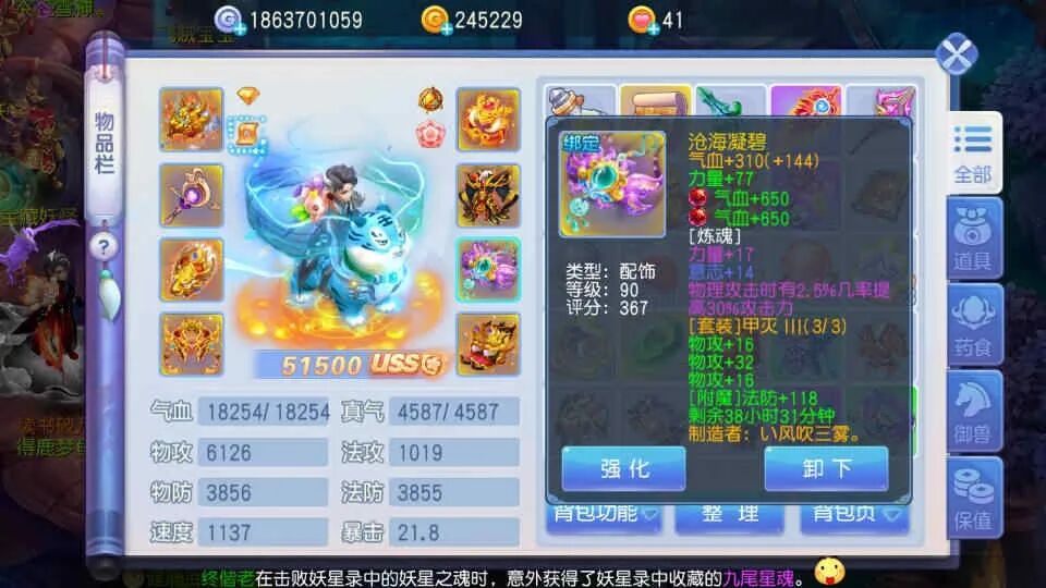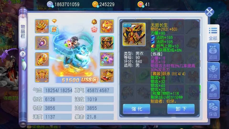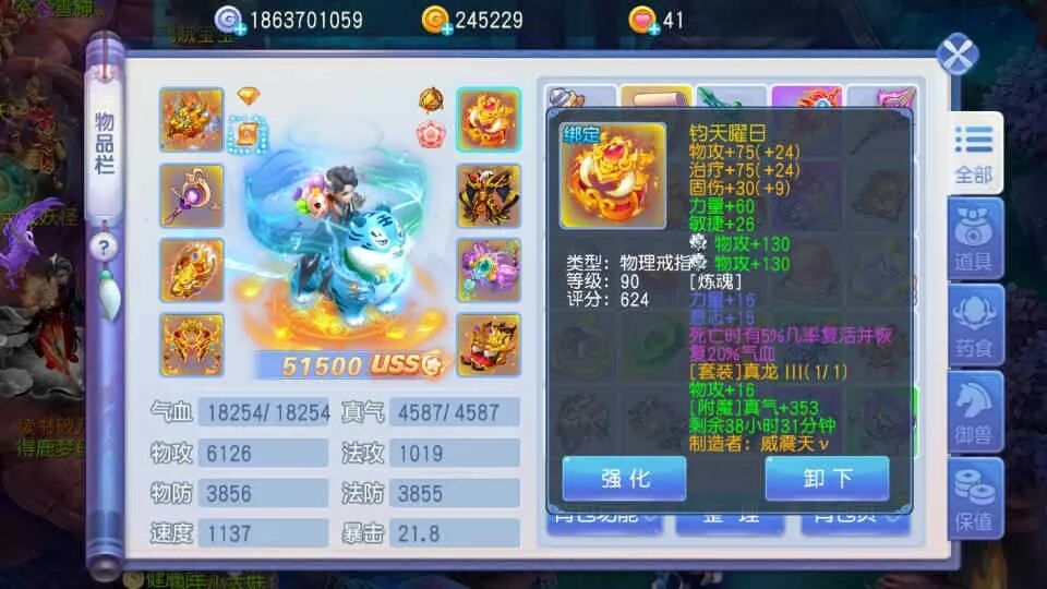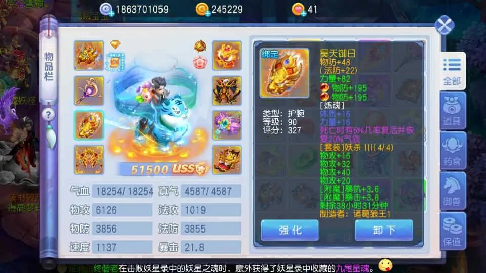 附加属性相当暴力,直接就是一个力量加82,更方便大佬追求极致的物攻!