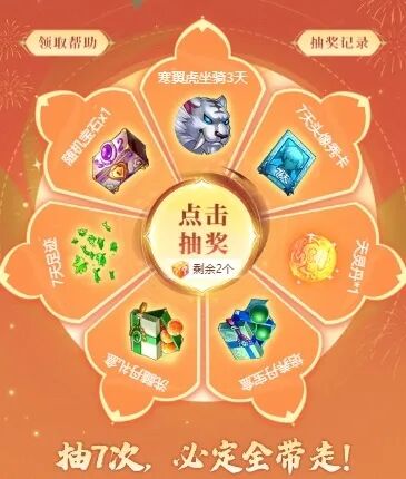 抽7次,必定带走全部游戏奖品!