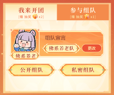 ※少主可选择自己开团组队:选择【我来开团】,并可选择公开或私密组队(注意:选择自己开团后就不能参与别人的队伍啦)