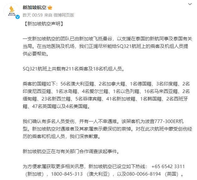 日前,载有211名乘客和18名机组人员的新加坡航空公司SQ321航班客机,因遇严重湍流紧急备降曼谷。截至5月22日,据新加坡航空公司北京办事处官微消息,“确认有多名人员受伤,并有一人不幸遇难”。湍流对飞行的影响再次引发关注。