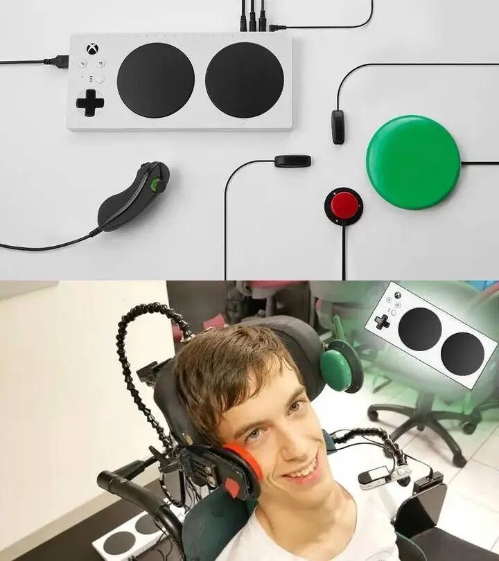 PS5、Xbox series X 等经典形态的手柄,依然是整个游戏市场的主流产品,在占据着游戏操作设备的大半个江山的同时,也渐渐在人们心中留下了一种印象:的确,必须得承认的是,这些已经预设好的造型,握持舒适,震动真实,也是当下大型主机游戏的不二之选。但这种双持对称的造型,终归不适合所有游戏,也不适合所有人群,比如在一些有肢体残疾的玩家看来,这些主流设备,实际上也是一些「特种设备」。Proteus 的出现,有点打破常规的意思,起码从目前官网已经公布的功能来看,它也正在重构手柄。Proteus 的零件虽然看起来凌乱、杂碎,但其实根据每个部件的造型,就能轻松把它们分成三类:主体模块就是当中的立方体,是 Proteus 最核心的部分,它最主要的功能是确定手柄组件的布局,以及手柄整体的形状。每一个立方体都能以 16 个不同的角度和其他的方块连接,在贴合到一起之后,可以拨动上面的白色锁定开关,以此来锁定两个组件。而且,根据官网介绍,每个套件将至少配备一个 Power Cube。Power Cube 的作用是为控制器供电,还能通过蓝牙适配器让组件连接到 Xbox 或 PC 等设备上。用方块打好地基,接着就可以把外围模块安装到上面,用不同方式的排列组合,以及模块选用,就能让 Proteus 拥有各种定制化功能。圆形的周围模块有很多款式,当中除了「菜单-Home 功能键」「ABXY 操作键」「方向键」「摇杆」这些基础的常规按键,还包含了手柄特有的「LB-LT」「RB-RT」按钮和扳机。当然,因为高度的定制化,官方称后续还会开发更多的外围模块,来应对更多的使用场景,适应更多的游戏玩家群体。最后一个大类的辅助配件,将定制化的概念,发挥到了极致。如果说上述的外围模块还只是游戏厂商一个人的狂欢,那辅助配件则让第三方(配件厂商、玩家)也参与到了 Proteus 的定制派对中。玩家可以根据自己的手型大小、操作习惯,来定制属于独属于自己的可调节手柄,3D 打印的组件终于可以走上官方产品。微软官方也宣称,它们将开源连接机制,允许用户 3D 打印自己的零件,并在官方社区分享自己的方案。Proteus 用三大类部件和一大社区,改写了游戏手柄的形态,虽然许多外媒在评测中依然将其定义为「专为残障人士打造」的产品,但从微软对 Proteus 的宣传语不难看出,它们对自己新推出的定制化手柄,有着更大的雄心:Proteus 所有的零件都能做到「即插即用」,部件之间的连接十分简单,而且还能适配 Xbox 和 PC 端的游戏,通过这一套件,玩家可以构建超过 1 亿种手柄形态、自定义配置以及 LED 灯光变化。Proteus 的套装里,一共包含了 24 个组件。定制化在为个人带来最适合的产品形态的同时,也产生了一些麻烦:这么多的配件,到底该怎么排列组合?对此,官方也根据不同游戏玩家的需求,给出了几种实用的组合方式。第一种拼接方式名叫 One Handed,专为一只手操作设计。和传统的手柄布局相比,One Handed 一改「对称排列」的常态,转而采用了「分布排列」。四个主题模块成 L 形,外围组件也按照不同的类别被放在了一起,ABXY 操作键则是放在了正中央。还有一个值得一提的小细节,可以看到「LB-LT」「RB-RT」按钮和扳机键并不是垂直放置,而是有一个 45° 的倾斜。如此设计,是为了更好地适应左手的操作,光用一只手的手指和手掌,就能轻松触碰到指定按钮。如果只有右手操作,那就把上面的布局镜像对称,重新拼接,一样可以完美适配。另一种 No Handed 的组合,可平放在桌子上或安装在轮椅上。2×3 组合方式可以让玩家在不用手、只用面部的情况下操作设备,而且每一个方块下方都安装了防滑垫片,保证了设备在无手操作时的稳定性。上述方案只是范例,每个人都可以根据自己的身体状况和操作习惯来大胆创作最适合自己的手柄。比如这个 2×2 的排列将摇杆放置在侧方,就更适合习惯于用大拇指操纵摇杆键的玩家。在众多展示出来的方案里,我印象最深的是一个一字型操纵杆的手柄。一方面,呈弧线的布局很符合单手握持的人体工学,每一个按键都能出现在手指够得到的地方;另一方面,放置在最下方的摇杆成了这种方案的点睛之笔,它既是手柄的支撑点,玩家又能通过手腕的转动来多一个维度的操作。并且,此类形态的手柄在玩飞机、赛车等模拟操控类的游戏再合适不过。无障碍设备,不仅需要硬件的重构,软件的适配也同样重要,Proteus 就是这两点结合的交点。玩家可以在 Proteus 配套的软件中,保存重新设计的硬件形态和功能,下次组装时,无需重头调试设置,就能直接使用。另外,玩家也能根据手柄的按键布局,改变每个按键的功能,比如摇杆的方向(左拨向右),以此让手柄变得更符合游戏操作。同时,Proteus 并没有因为「无障碍设备」的身份变得无趣,它反而比传统的 Xbox 手柄更有个性,除了能随意拼接,Proteus 的 App 里还提供了 LED 灯光的调节,玩家可以调整手柄背光灯的颜色和亮度,来提升游玩的氛围感。高度自定义+创意设计+软硬件协同,让 Proteus 获得了戴森设计大奖等国际奖项,虽然离正式发售还有一定的距离,但在理念上,对各种玩家群体的包容和关注,Proteus 依然走在了行业的前列。对于玩家而言,好设备的评判标准并不是它获过什么奖,而是用得顺手与否,总体来看,Proteus 做得很顺手。2020 年,作为发小的 Brandon Blacoe 和 Eibhlin O'Riordan 失联多年后,在 Game Jam(限时游戏开发挑战赛)再次相遇,两人在比赛上合作完成了一
