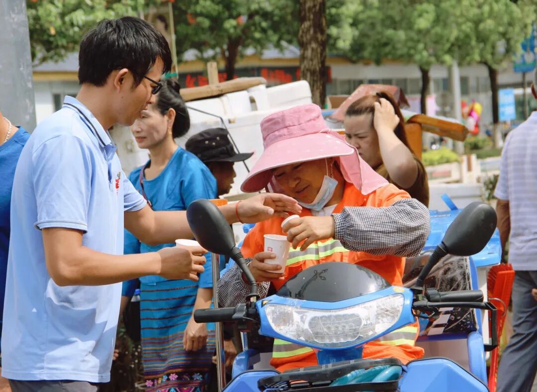 5月18日,勐海茶厂益工们在勐海县城以及大益馆周边开展公益奉茶活动,共同庆祝国际茶日。为茶厂周边社区居民、过往的市民、周边的商户等,奉上一杯盈满大家心意的大益茶。与此同时,益工们做起了讲解员,为大家耐心讲解勐海茶厂的厂史和普洱茶知识。