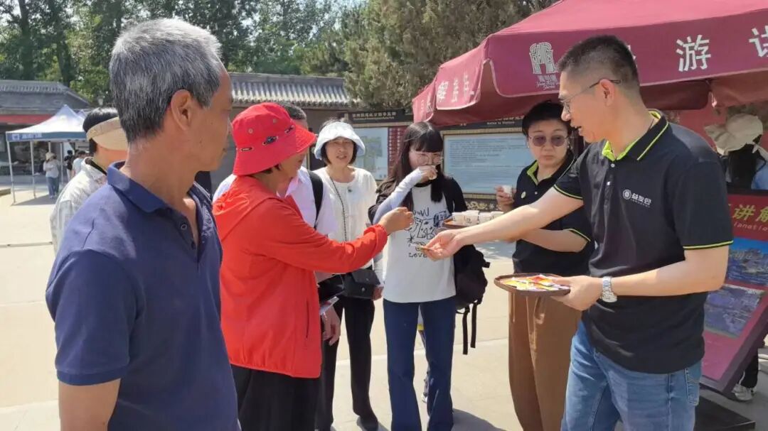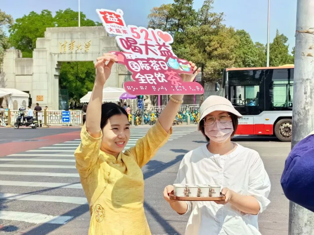 5月21日当天,大益皇茶会及北京益友会、北京茶道院的益工们在清华大学西门、圆明园南门的道路上进行公益奉茶活动,为路上的游客、行人、环卫工人等奉上一杯醇厚的普洱茶。益工们奉茶的同时还不忘向茶友讲解“国际饮茶日”的由来,在推广茶文化的道路上大益人一直不遗余力。