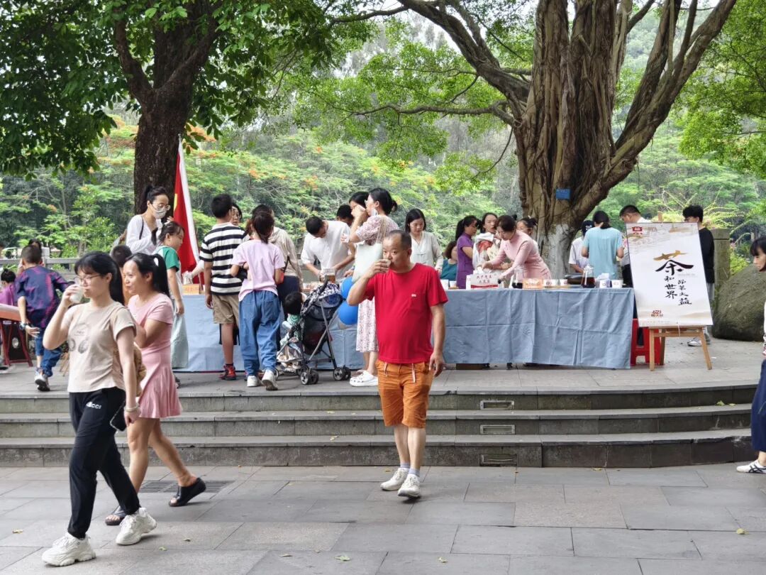 东莞旗峰山公园人流量较大,是东莞大益一个长期的公益奉茶点。近四年来,东莞大益的员工们每逢周末,从上午10点至晚上8点,都会在此进行公益奉茶活动,为周末前来公园的市民奉上一杯香醇的大益茶汤。