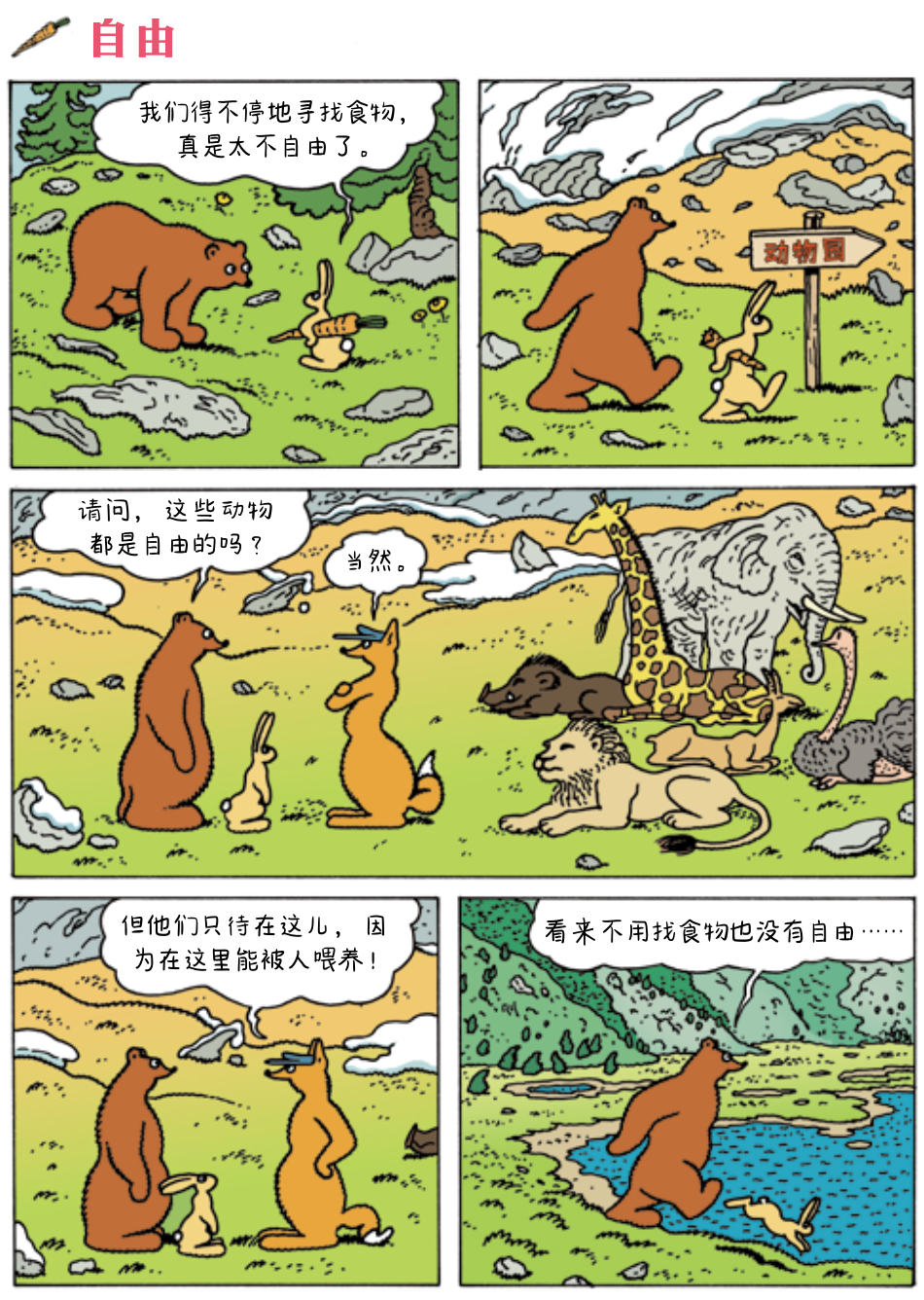 👆自由2:有的动物不停奔波于寻找资源的途中,因此失去了自由;有的动物选择留在资源富足的地方,却同样失去了自由。——《你能做我的朋友吗?》