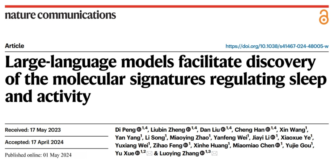 综上,该研究不仅提供了大型语言模型辅助科学探索的研究方式,而且解码了参与睡眠和活动调控的分子特征。本论文通讯作者为华中科技大学生命科学与技术学院张珞颖教授和薛宇教授,第一作者为华中科技大学生命科学与技术学院彭迪博士,博士研究生郑刘彬、刘丹和韩诚。该研究获得了科技部重点研发计划、重大项目以及国家自然科学基金等项目支持。
