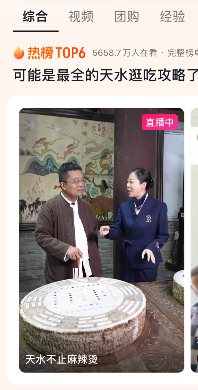 还有从业二十多年的老导游@小黑诸鸣,在甘肃天水麻辣烫走红后,他领着506万人次直播“云游”麦积山石窟和天水市博物馆,挖掘天水美食背后的8000年历史。